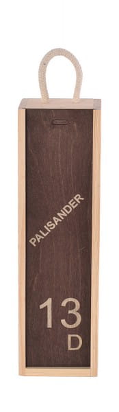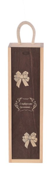 Skrzynka drewniana Vintore-1 na wino jasna naturalna w nietuzinkowym połączeniu z zasuwką w kolorze palisander. Idealna skrzynka upominkowa na jedną butelkę wina.