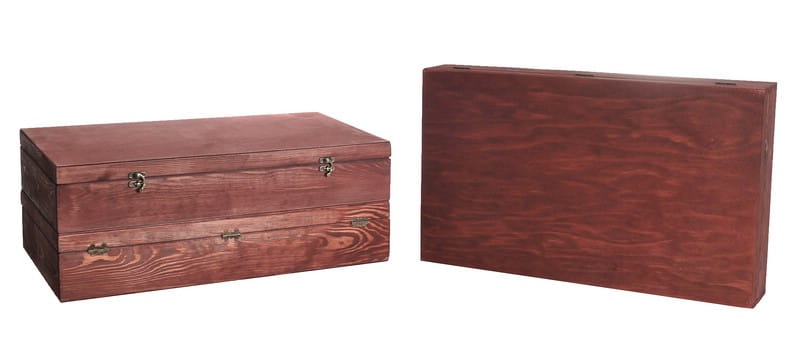 Skrzynka drewniana Vintore Kuferek -6 na wino w kolorze mahoniowym. Idealna skrzynka upominkowa na sześć butelek wina, ekologiczne i eleganckie opakowanie wykonane ze sklejki brzozowej.