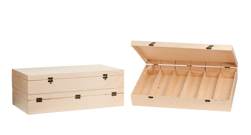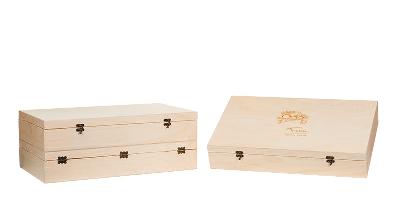 Skrzynka drewniana Vintore Kuferek -6 na wino w kolorze naturalnym. Idealna skrzynka upominkowa na sześć butelek wina, ekologiczne i eleganckie opakowanie wykonane ze sklejki brzozowej.