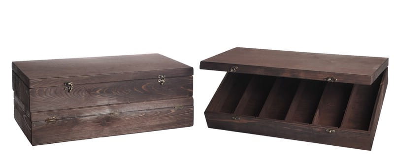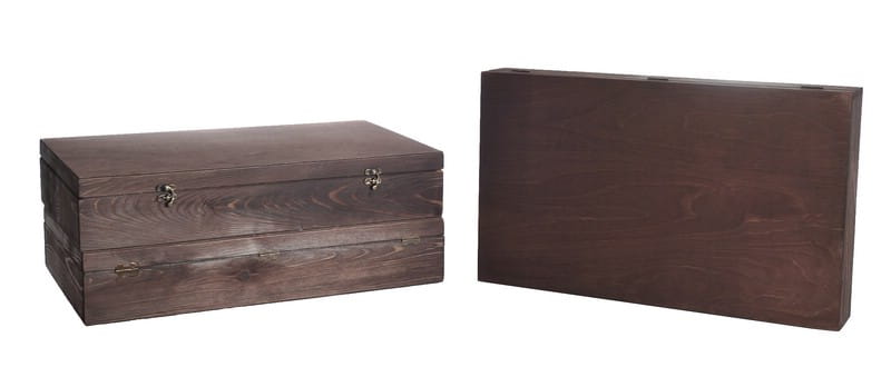 Skrzynka drewniana Vintore Kuferek -6 na wino w kolorze palisander. Idealna skrzynka upominkowa na sześć butelek wina, ekologiczne i eleganckie opakowanie wykonane ze sklejki brzozowej.