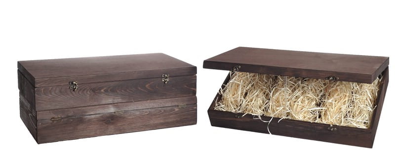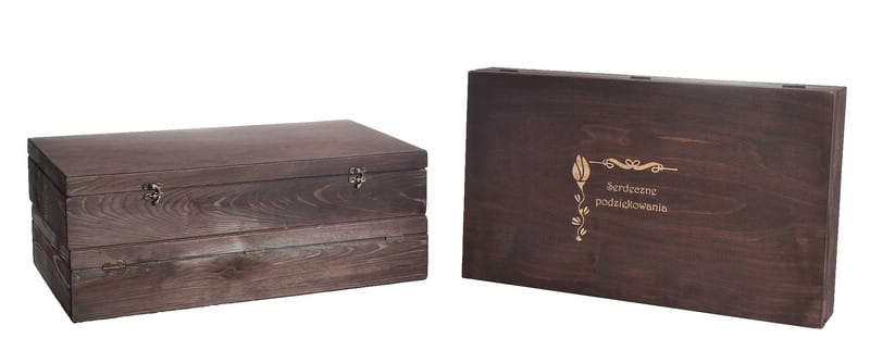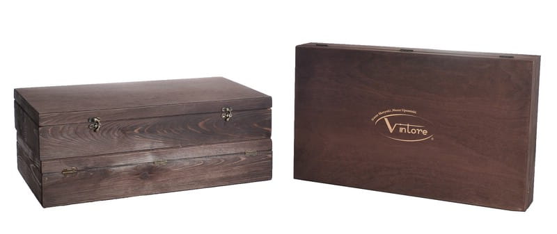 Skrzynka drewniana Vintore Kuferek -6 na wino w kolorze palisander. Idealna skrzynka upominkowa na sześć butelek wina, ekologiczne i eleganckie opakowanie wykonane ze sklejki brzozowej.