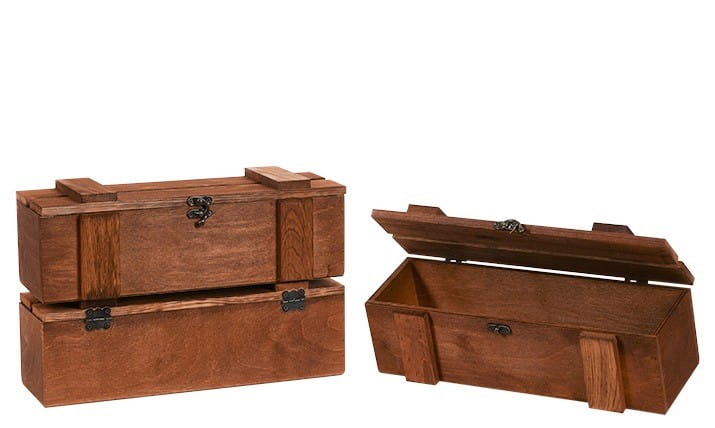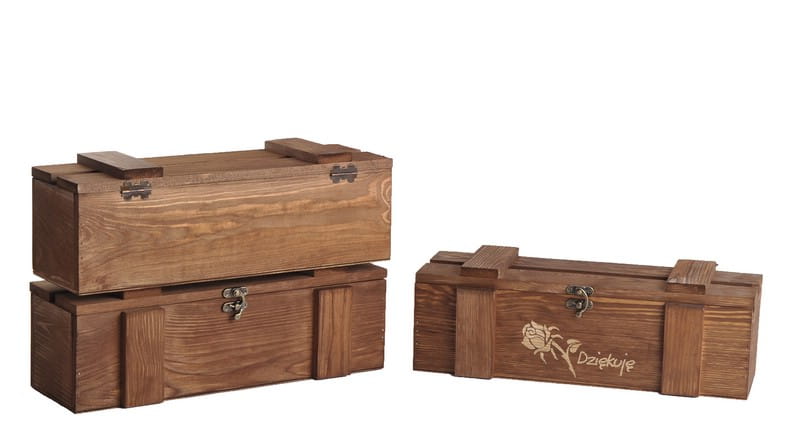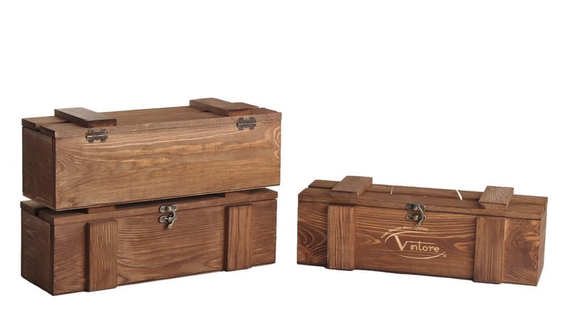 Skrzynka drewniana Vintore Kuferek Szczebelkowy -1 na wino w kolorze brązowy. Oryginalna skrzynka upominkowa na jedną butelkę wina, ekologiczne i eleganckie opakowanie wykonane ze sklejki brzozowej i drewna sosnowego.